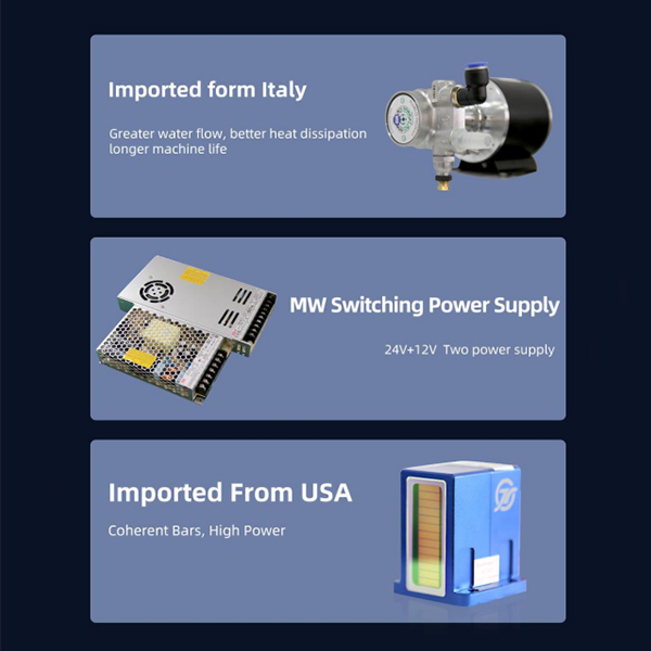 1. Adopting the collimation technology of FAC, which can effectively improve the efficiency of energy . The shot energy is more focused.2. Super cooling system, using the air conditioning system for the laser to cool down, thus The laser can be used for a long time without worrying about heat.