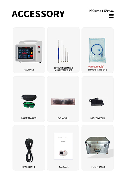 This machine uses a combination of 980nm and 1470nm laser wavelengths. For safe operation, treatments should only be performed by certified professionals.